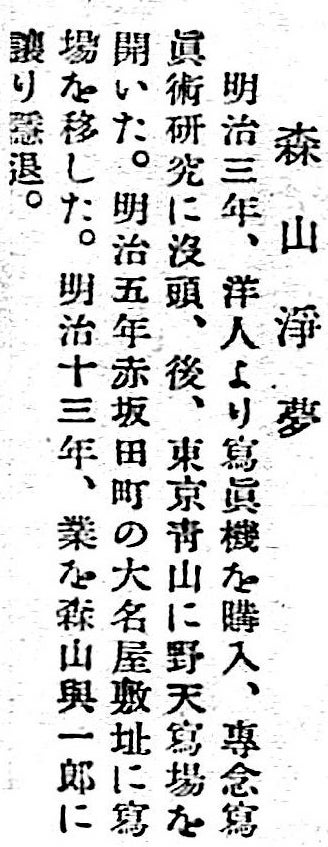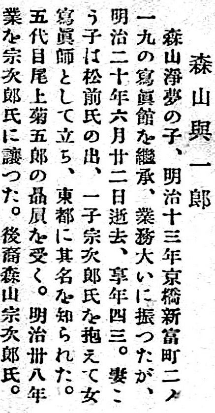 森山與一郎 生年不明 二代目(仮称)森山写真館 新富町 |