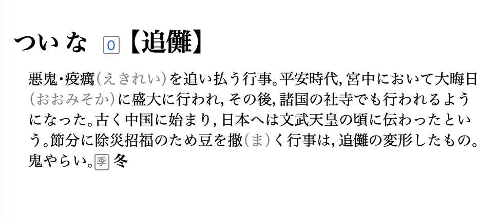 季語が 追儺(ついな:節分の鬼退治の豆まき)の句は 6句