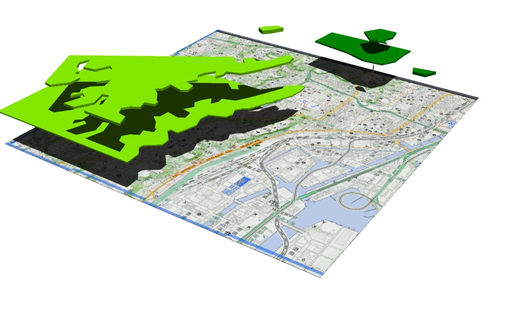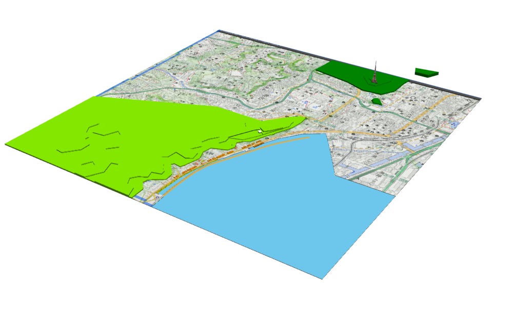 囂kamabisuan庵ジジイは、国土地理院の地図に明治四十年の東京市芝区全図の高輪部分を合成し、テンプレートに使用し、ポンポンと地形やその他のオブジェクトを配置する。