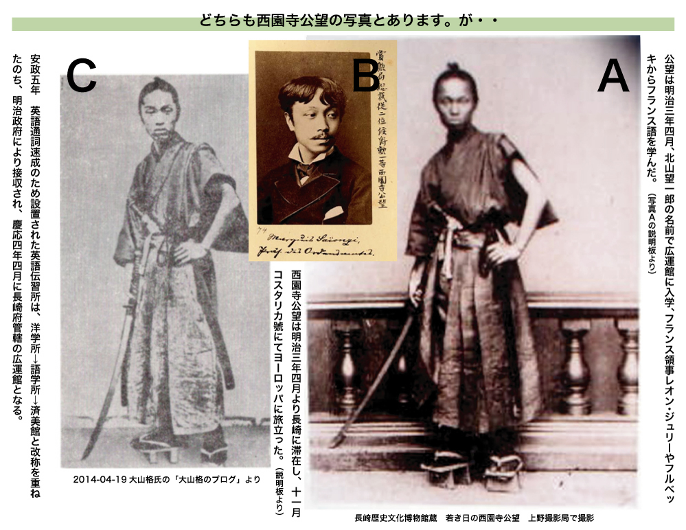 どちらも「西園寺公望」とインプットして、webからピックアップした画像である。ボケボケながら、AとCは同じポーズであることが良くわかる。ぼけぼけゆえはたしてAとCは同一の人物かどうかこれでは確かめられない。