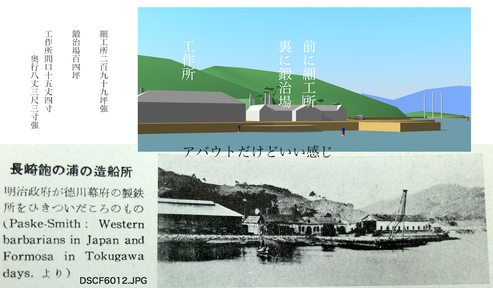 さりながら、煙突二本の「鍛冶場」や煙突一本の「鋸場」や一番大きな「工作所」のサイズも判明した。