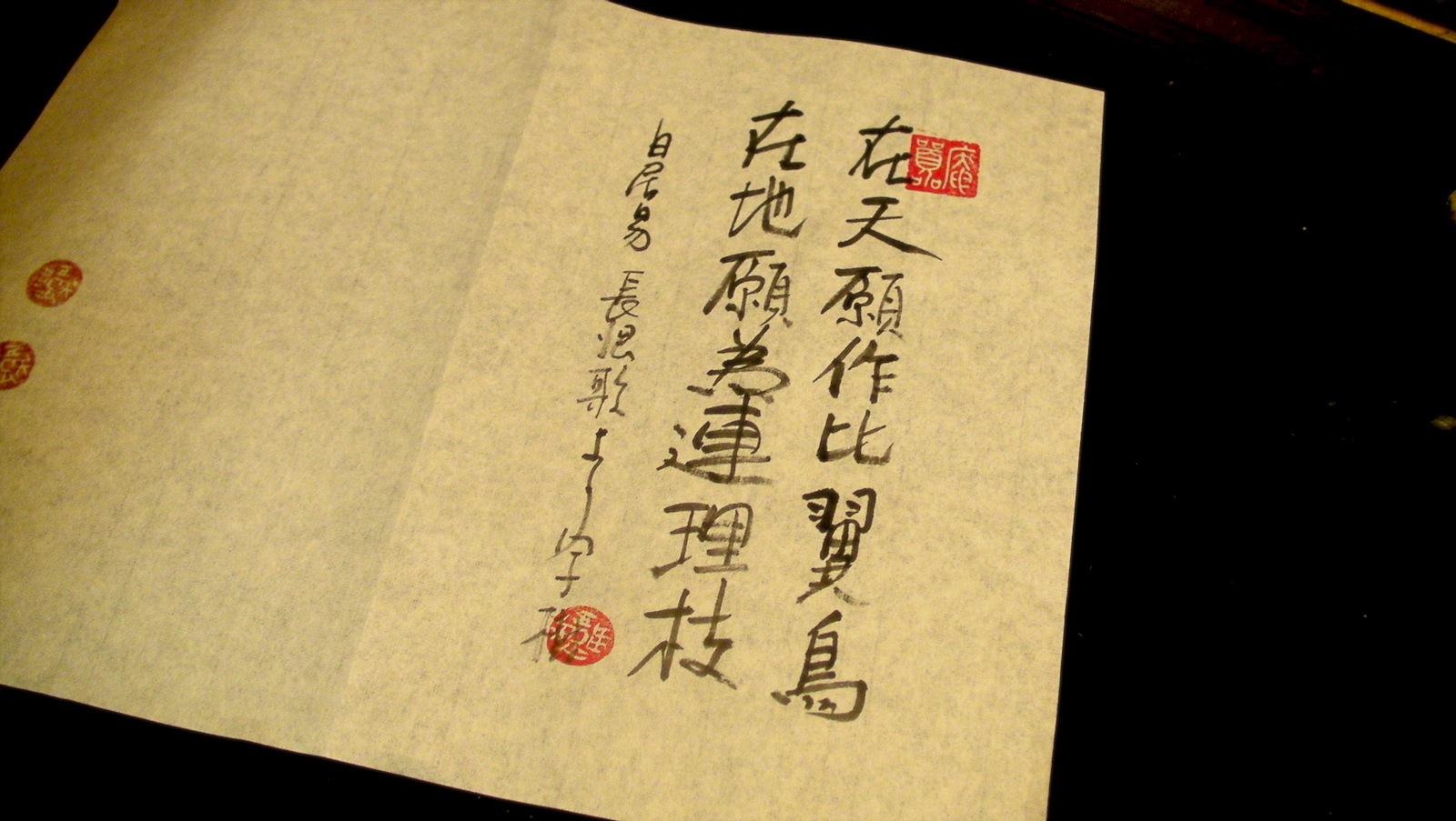 天にあっては願わくは比翼の鳥となり、地にあっては願わくは連理の枝とならん。