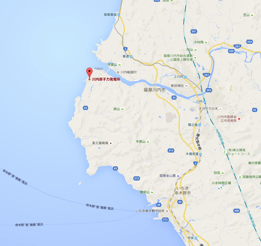 グーグルマップで、薩摩川内の九州電力川内原子力発電所あたりを見ると不安になる。
