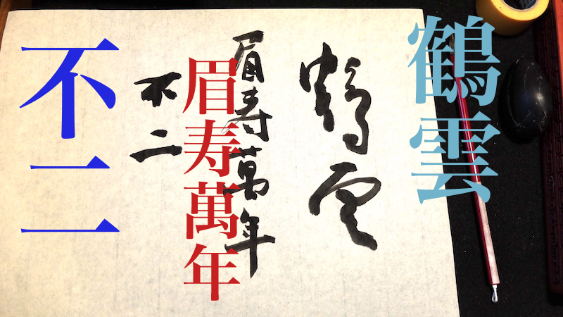掛け軸作戦だ。長寿を祝い寿ぎ祈念する縁起のよい言葉「鶴雲」「眉寿萬年」「不二」などを大盤振る舞いをしたわけだ。