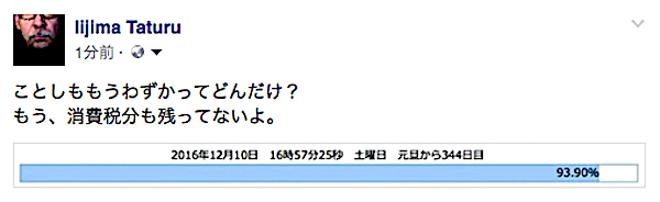 12月の始めに、ああ今年も残り8%か・・はやいなあ!と思った瞬間、ええっ「消費税」って「一月分の手取り収入」だと気がつき結構なもんだと思った。