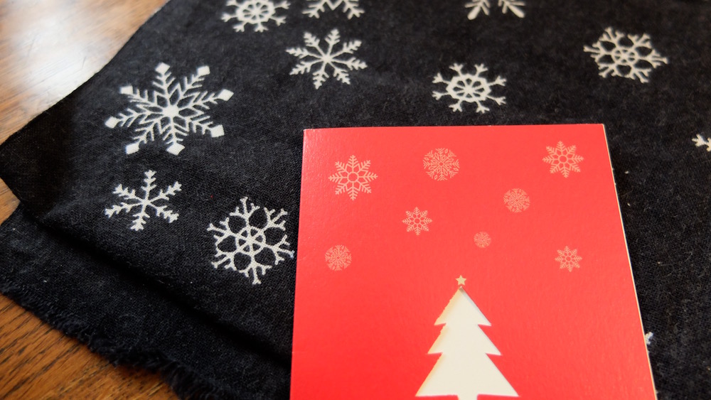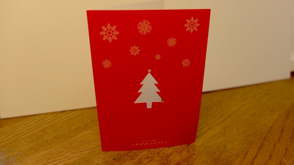 物件は、ホテルさんのロビー通路にご自由にお持ち帰り下さいとあったクリスマスカードの販促物だ。