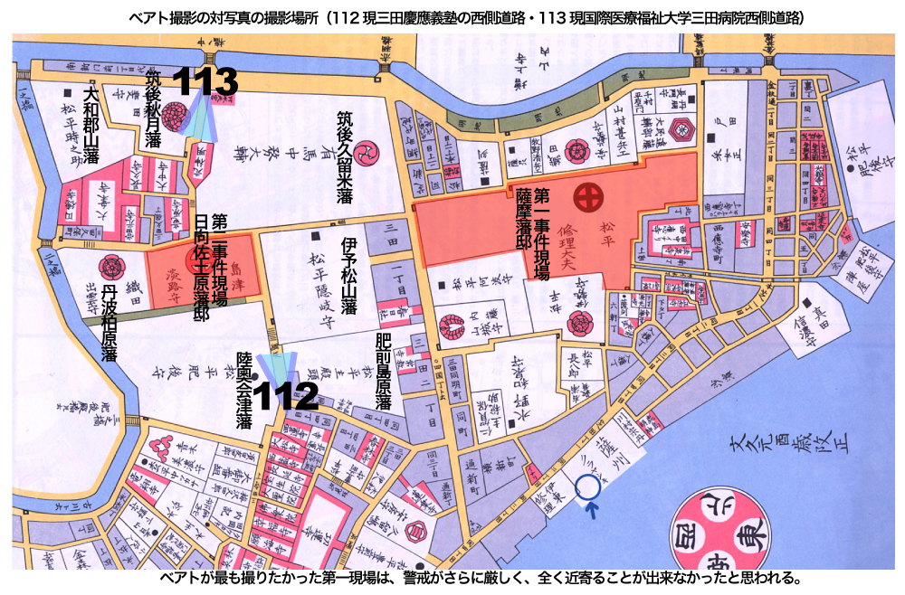 ベアトは、混迷する政局を背景に勃発した大事件の現場を記録しようと、いさんで海浜の薩摩屋敷現場に向かったが警戒が厳重で立ち寄れず、坂上の島津佐土原藩邸(現三井倶楽部跡)の第二現場を目指した。