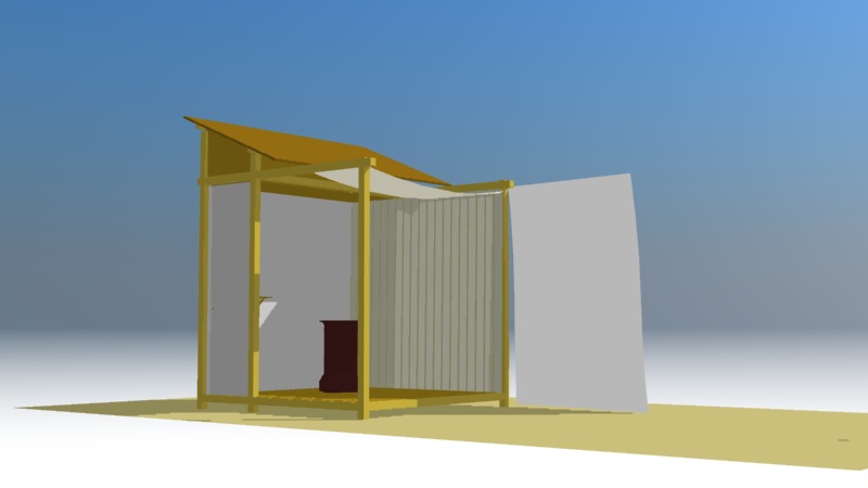 それはそれとして、写真と同じ、△の太陽光り漏れを求め、余が想定した写場スケールに合わせてShade13でシミュレーション計算を始めた。
