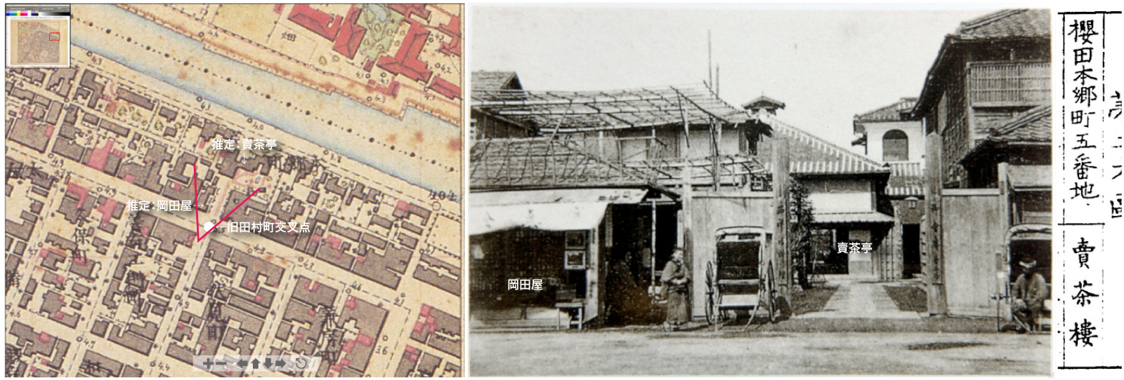 日本料理&西洋料理店「賣茶亭(楼)」は始め桜田久保町そして、桜田本郷町5番地もしくは7番地にとあるが、移転をしたモノか地番が変わったモノかはわからない。いずれにしても、現在の日比谷通りと西新橋交叉点の北東角のあたりとなる。