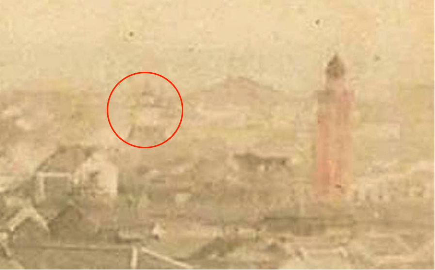 あったあった、赤く色付けされた塔の左方に時計塔らしき建物が有った!!