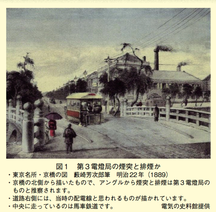 オマケに神田錦町の第4電灯局の煙突が写る写真をどうぞ。