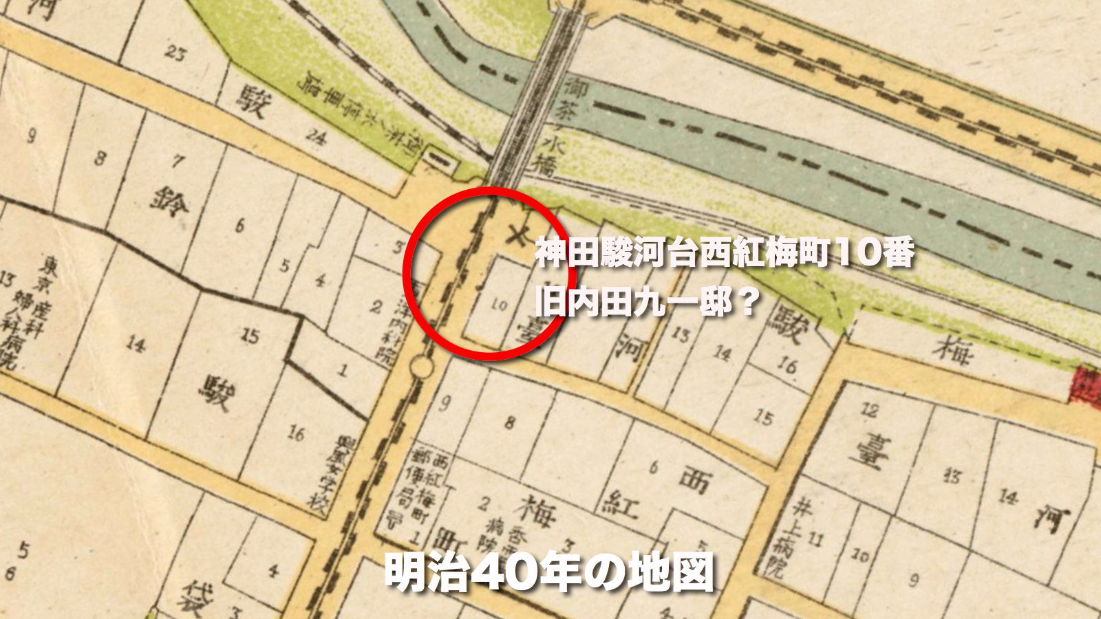 内田九一の新邸の住所は諸氏の研究から、「駿河台西紅梅町10番」ということである。