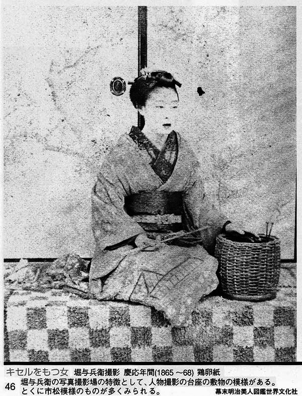 | 市松模様写真 | 森重氏収集写真 | 内田九一写真鑑定術関係 | photography | 日本の肖像 | 井関コレクション | 将軍のフォトグラフィー | 日本写真学会誌 | 幕末明治美人図鑑 | その他 |