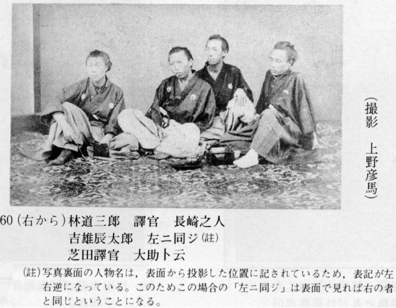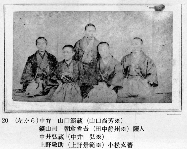 20 (左から) 中弁 山口範蔵(山口尚芳) 鑛山司 朝倉省吾(田中静州)薩人 中井弘蔵(中井弘) 上野敬助(上野景範) 小松玄蕃