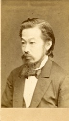 この人物は「明治の若き群像」を買ってくれた子孫の方から連絡があって、吉原重俊だと判明しました。ほぼ同じ写真を所蔵されているそうです。石黒