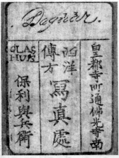 縦90ミリ横70ミリガラス湿板桐箱入り「保利」与兵衛のラベル