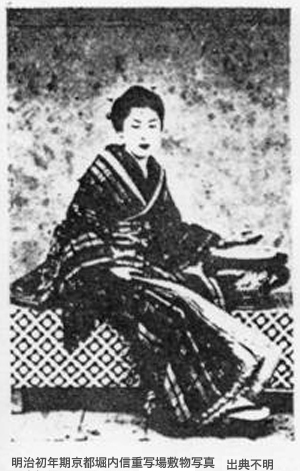 敷物パターンAの写真は長崎からやってきた「京阪写真師の生みの親」亀谷徳次郎が中心になって活動した時期のもので、堀内信重や堀与兵衛はここで、徳次郎の指導を受けながらまた徳次郎を助けたと当HPは考えている。