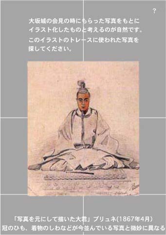 (E)ブリュネのスケッチ徳川慶喜 ![]() ブリュネのスケッチの元になった徳川慶喜の写真はAからDでは無い。と言うことは、まぼろしのEが何処かにあると云うことだ。 |