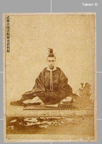 <以下は松戸市ホームページよりの引用> http://www.city.matsudo.chiba.jp/index/profile/shisetsu-guide/rekishi/tojo/degital-arc/tenrankai/05.html 将軍のフォトグラフィー -展覧会ノート- 斉藤 洋一 ◆将軍のイメージ−徳川昭武の渡欧− (前略) 慶応2年(1866)3月10日、慶喜は昭武を京都の自邸(注39)に招き、彼の肖像を撮影した。 13日には三枚を原市之進へ渡し、その内の一枚を貞芳院(慶喜実母)へ贈るように指示を出している(注40)。この時の昭武の写真が(参考図版16)であろうと思われる。この時よりも幼い昭武の衣冠姿の画像(参考図版10)が伝えられているが、今のところ撮影日時は分らない(注41)。 この年の11月、昭武は、翌年にパリで開催される万国博覧会に兄の将軍慶喜の名代として派遣されることになった。 (後略) 注39 慶喜は文久3年12月21日に東本願寺から御池神泉苑通りにあった若狭小浜藩酒井家の空き藩邸に移り、慶応3年9月21日、二条城に移るまで京都住まいの本拠とした。 注40 『慶応二年寅正月 御用留』(財団法人 水府明徳会所蔵 番号12425)、慶応二年三月一三日条。 先日一橋様へ御出之節写真鏡ニ而民部大輔様御相を為御取ニ相成候由ニ而三枚市之進方相廻候、其内壱枚ハ貞芳院様御側へ御指上被成候様一橋様ヨリ御沙汰被為在候事 注41 撮影時の特定は史料の精査を待たなければならないが、昭武が衣冠を着用していることから、元治元年(1864)11月19日に従五位下に叙任され、同28日に民部大輔となっている頃が一つの目安にはならないかと想像される。 |
