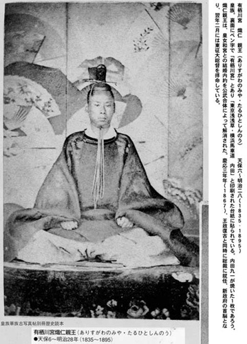 有栖川宮写真は、内田九一でプリントしたか、撮影した写真。 裏面にペン字で「有栖川宮」とあり、「東京浅草 横浜馬車道 内田」と印刷された台紙に貼られています。(shige) | ||